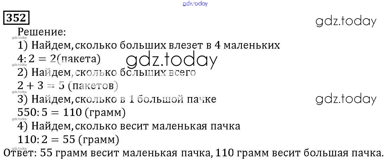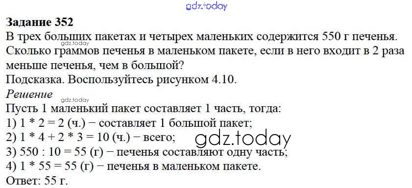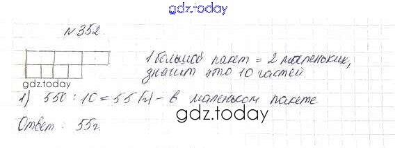 На страницах сайта gdz.today вы найдете учебный и вспомогательный материал, направленный на улучшения знаний школьной программы. ГДЗ - онлайн мир знаний 4.3. Задачи на части Решение к главе 4. Использование свойств действий при вычислениях 352 Учебнику по Математике для 5 класса Дорофеев, Шарыгин Просвещение 2015