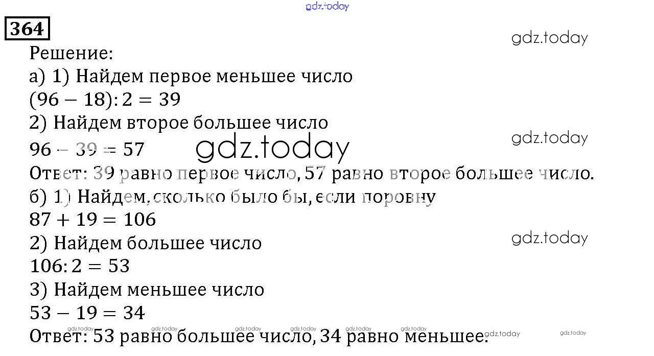 На страницах сайта gdz.today вы найдете учебный и вспомогательный материал, направленный на улучшения знаний школьной программы. ГДЗ - онлайн мир знаний 4.4. Задачи на уравнивание Решение к главе 4. Использование свойств действий при вычислениях 364 Учебнику по Математике для 5 класса Дорофеев, Шарыгин Просвещение 2015