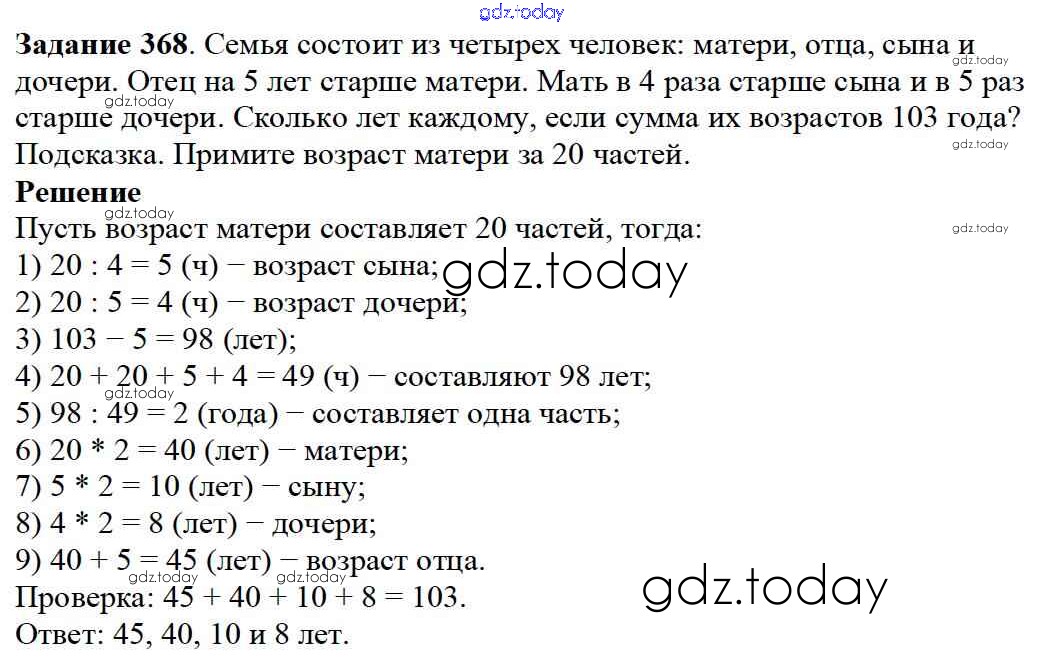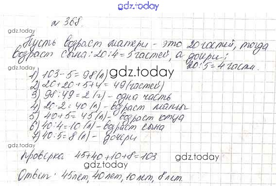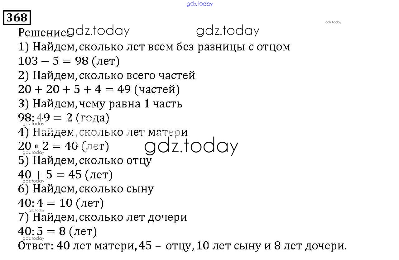 На страницах сайта gdz.today вы найдете учебный и вспомогательный материал, направленный на улучшения знаний школьной программы. ГДЗ - онлайн мир знаний 4.4. Задачи на уравнивание Решение к главе 4. Использование свойств действий при вычислениях 368 Учебнику по Математике для 5 класса Дорофеев, Шарыгин Просвещение 2015