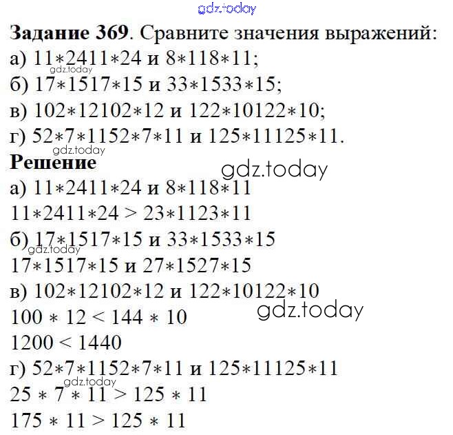 На страницах сайта gdz.today вы найдете учебный и вспомогательный материал, направленный на улучшения знаний школьной программы. ГДЗ - онлайн мир знаний 4.4. Задачи на уравнивание Решение к главе 4. Использование свойств действий при вычислениях 369 Учебнику по Математике для 5 класса Дорофеев, Шарыгин Просвещение 2015