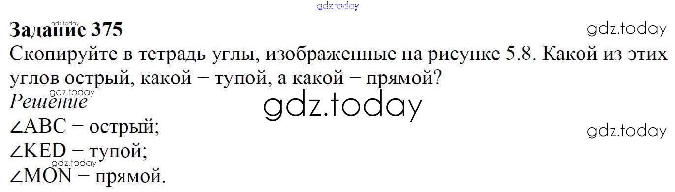 На страницах сайта gdz.today вы найдете учебный и вспомогательный материал, направленный на улучшения знаний школьной программы. ГДЗ - онлайн мир знаний 5.1. Как обозначают и сравнивают углы Решение к главе 5. Углы и многоугольники 375 Учебнику по Математике для 5 класса Дорофеев, Шарыгин Просвещение 2015