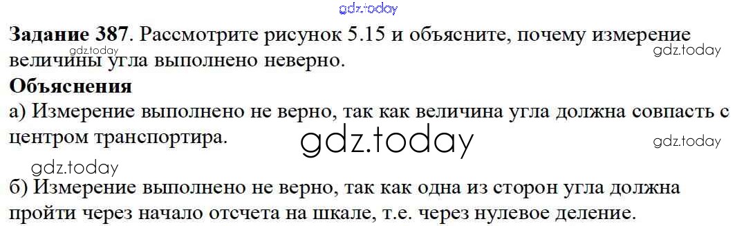 На страницах сайта gdz.today вы найдете учебный и вспомогательный материал, направленный на улучшения знаний школьной программы. ГДЗ - онлайн мир знаний 5.2. Измерение углов Решение к главе 5. Углы и многоугольники 387 Учебнику по Математике для 5 класса Дорофеев, Шарыгин Просвещение 2015