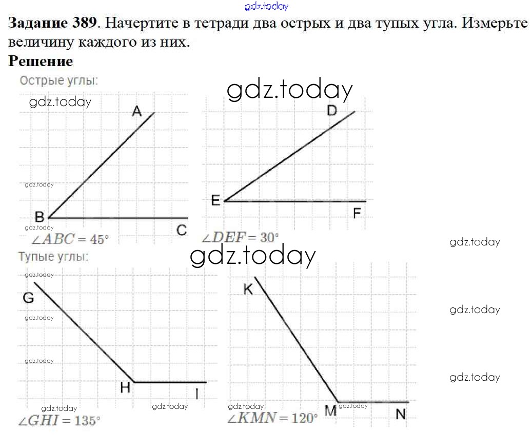 На страницах сайта gdz.today вы найдете учебный и вспомогательный материал, направленный на улучшения знаний школьной программы. ГДЗ - онлайн мир знаний 5.2. Измерение углов Решение к главе 5. Углы и многоугольники 389 Учебнику по Математике для 5 класса Дорофеев, Шарыгин Просвещение 2015