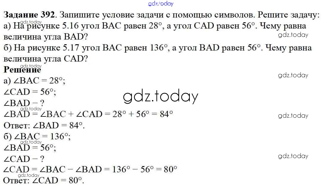 На страницах сайта gdz.today вы найдете учебный и вспомогательный материал, направленный на улучшения знаний школьной программы. ГДЗ - онлайн мир знаний 5.2. Измерение углов Решение к главе 5. Углы и многоугольники 392 Учебнику по Математике для 5 класса Дорофеев, Шарыгин Просвещение 2015