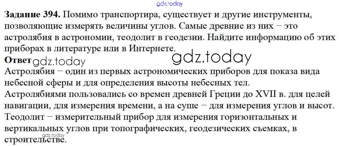 На страницах сайта gdz.today вы найдете учебный и вспомогательный материал, направленный на улучшения знаний школьной программы. ГДЗ - онлайн мир знаний 5.2. Измерение углов Решение к главе 5. Углы и многоугольники 394 Учебнику по Математике для 5 класса Дорофеев, Шарыгин Просвещение 2015