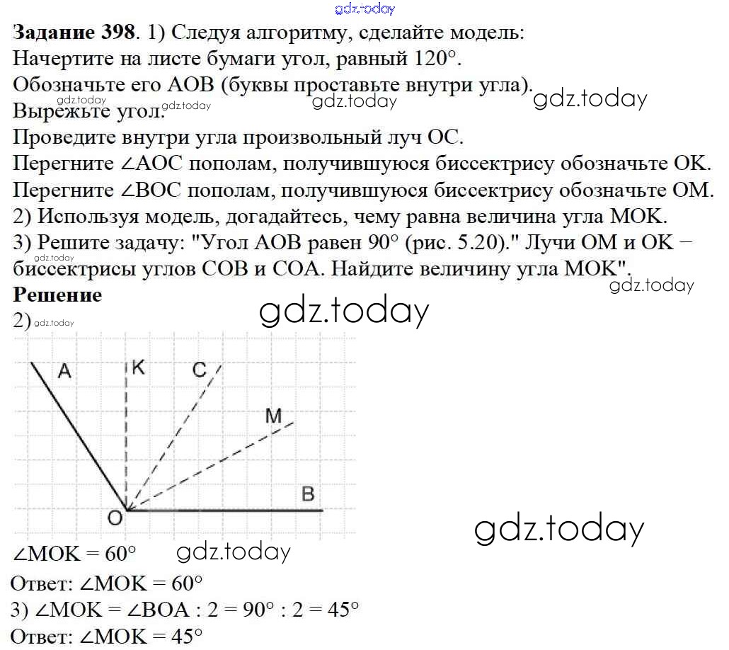 На страницах сайта gdz.today вы найдете учебный и вспомогательный материал, направленный на улучшения знаний школьной программы. ГДЗ - онлайн мир знаний 5.2. Измерение углов Решение к главе 5. Углы и многоугольники 398 Учебнику по Математике для 5 класса Дорофеев, Шарыгин Просвещение 2015