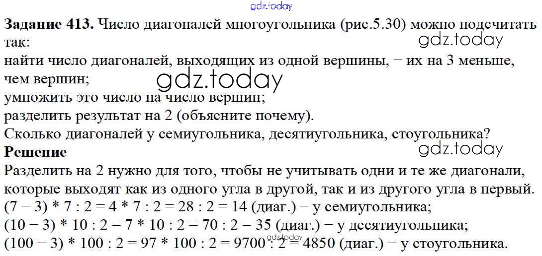 На страницах сайта gdz.today вы найдете учебный и вспомогательный материал, направленный на улучшения знаний школьной программы. ГДЗ - онлайн мир знаний 5.3. Ломаные и многоугольники Решение к главе 5. Углы и многоугольники 413 Учебнику по Математике для 5 класса Дорофеев, Шарыгин Просвещение 2015