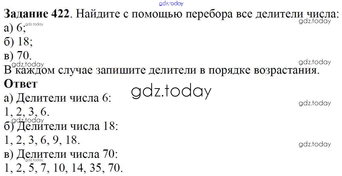 На страницах сайта gdz.today вы найдете учебный и вспомогательный материал, направленный на улучшения знаний школьной программы. ГДЗ - онлайн мир знаний 6.1. Делители и кратные Решение к главе 6. Делимость чисел 422 Учебнику по Математике для 5 класса Дорофеев, Шарыгин Просвещение 2015