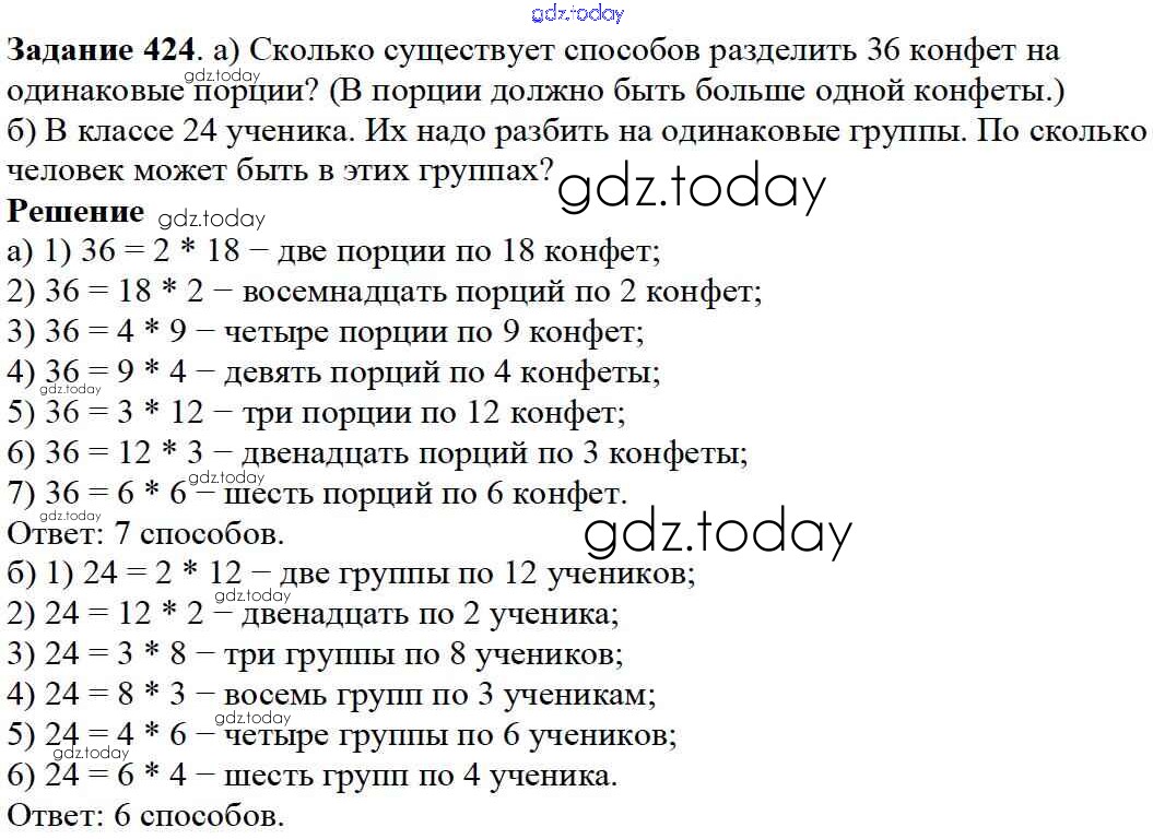 На страницах сайта gdz.today вы найдете учебный и вспомогательный материал, направленный на улучшения знаний школьной программы. ГДЗ - онлайн мир знаний 6.1. Делители и кратные Решение к главе 6. Делимость чисел 424 Учебнику по Математике для 5 класса Дорофеев, Шарыгин Просвещение 2015