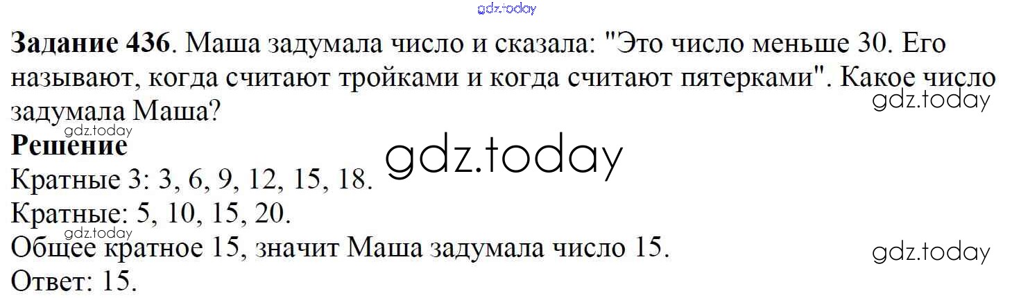 На страницах сайта gdz.today вы найдете учебный и вспомогательный материал, направленный на улучшения знаний школьной программы. ГДЗ - онлайн мир знаний 6.1. Делители и кратные Решение к главе 6. Делимость чисел 436 Учебнику по Математике для 5 класса Дорофеев, Шарыгин Просвещение 2015