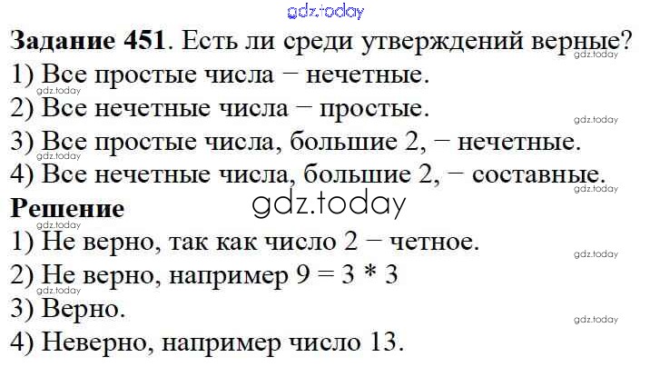 На страницах сайта gdz.today вы найдете учебный и вспомогательный материал, направленный на улучшения знаний школьной программы. ГДЗ - онлайн мир знаний 6.2. Простые и составные Решение к главе 6. Делимость чисел 451 Учебнику по Математике для 5 класса Дорофеев, Шарыгин Просвещение 2015