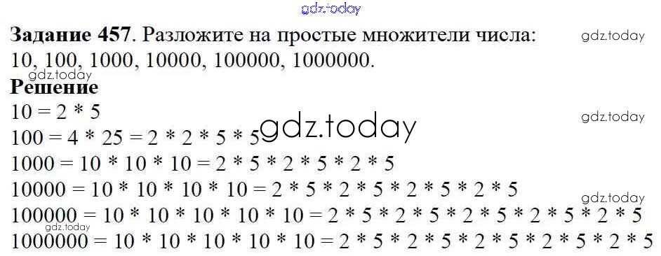 На страницах сайта gdz.today вы найдете учебный и вспомогательный материал, направленный на улучшения знаний школьной программы. ГДЗ - онлайн мир знаний 6.2. Простые и составные Решение к главе 6. Делимость чисел 457 Учебнику по Математике для 5 класса Дорофеев, Шарыгин Просвещение 2015
