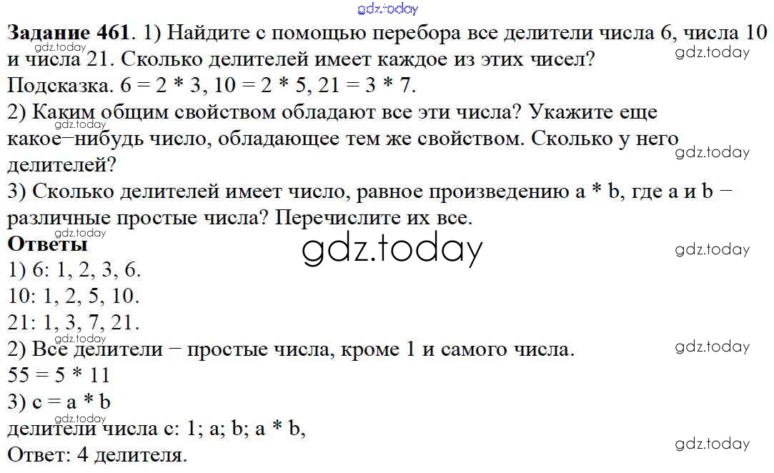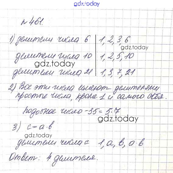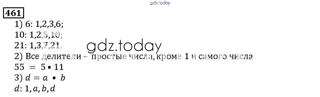 На страницах сайта gdz.today вы найдете учебный и вспомогательный материал, направленный на улучшения знаний школьной программы. ГДЗ - онлайн мир знаний 6.2. Простые и составные Решение к главе 6. Делимость чисел 461 Учебнику по Математике для 5 класса Дорофеев, Шарыгин Просвещение 2015