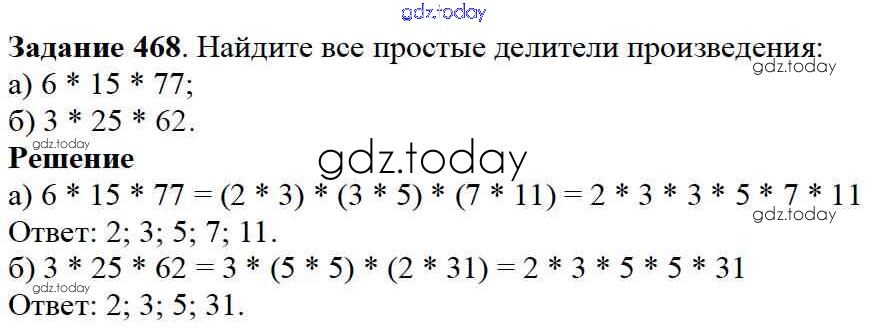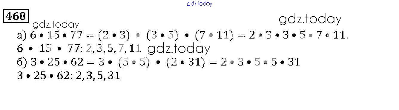 На страницах сайта gdz.today вы найдете учебный и вспомогательный материал, направленный на улучшения знаний школьной программы. ГДЗ - онлайн мир знаний 6.3. Свойства делимости Решение к главе 6. Делимость чисел 468 Учебнику по Математике для 5 класса Дорофеев, Шарыгин Просвещение 2015