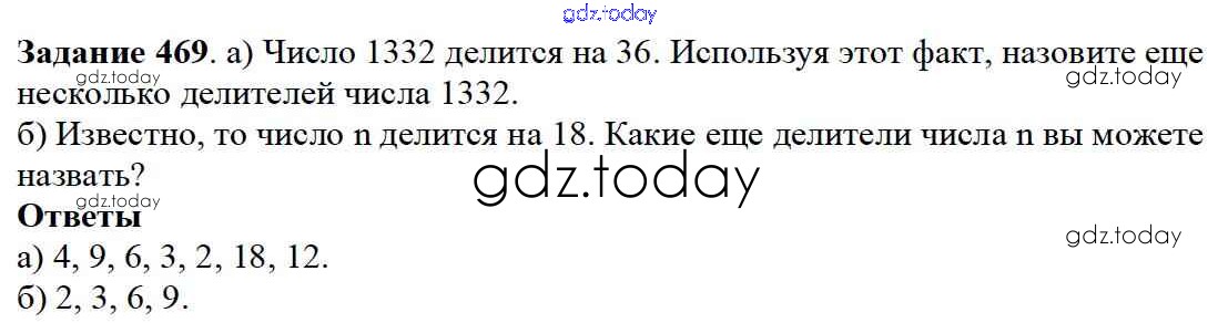 На страницах сайта gdz.today вы найдете учебный и вспомогательный материал, направленный на улучшения знаний школьной программы. ГДЗ - онлайн мир знаний 6.3. Свойства делимости Решение к главе 6. Делимость чисел 469 Учебнику по Математике для 5 класса Дорофеев, Шарыгин Просвещение 2015