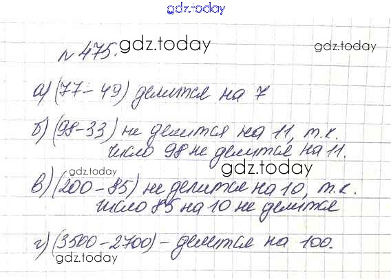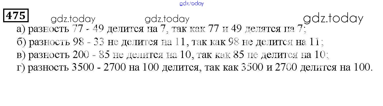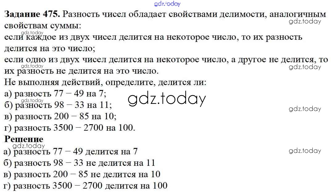 На страницах сайта gdz.today вы найдете учебный и вспомогательный материал, направленный на улучшения знаний школьной программы. ГДЗ - онлайн мир знаний 6.3. Свойства делимости Решение к главе 6. Делимость чисел 475 Учебнику по Математике для 5 класса Дорофеев, Шарыгин Просвещение 2015