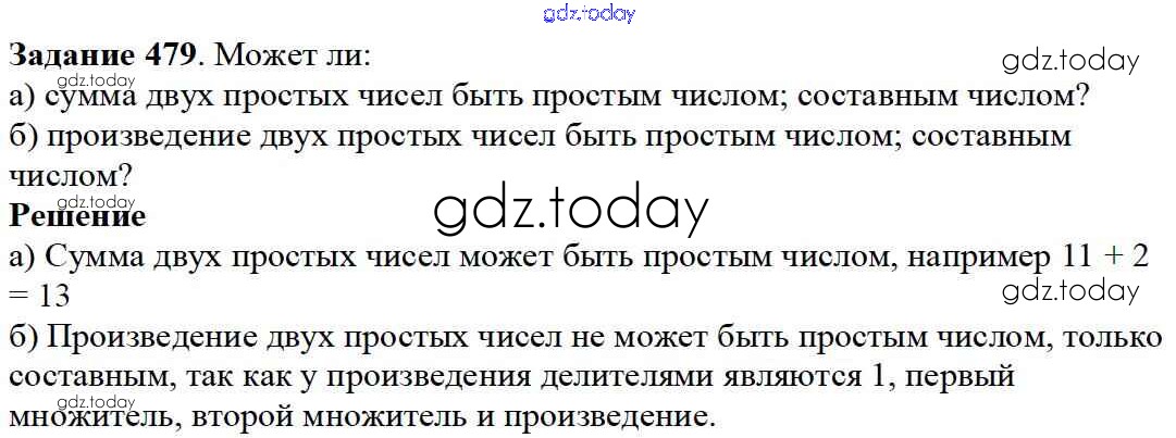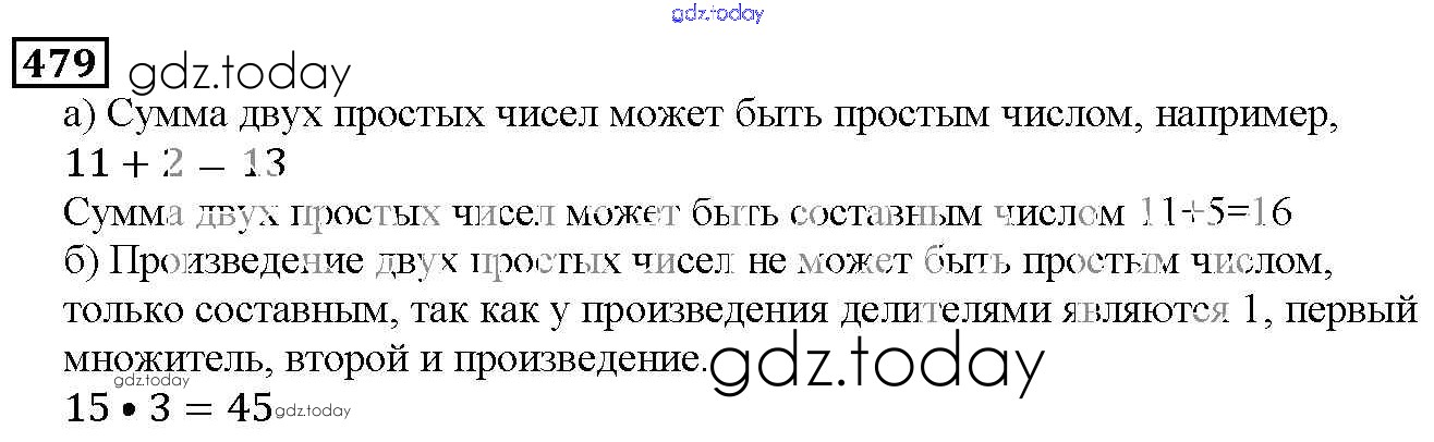 На страницах сайта gdz.today вы найдете учебный и вспомогательный материал, направленный на улучшения знаний школьной программы. ГДЗ - онлайн мир знаний 6.3. Свойства делимости Решение к главе 6. Делимость чисел 479 Учебнику по Математике для 5 класса Дорофеев, Шарыгин Просвещение 2015