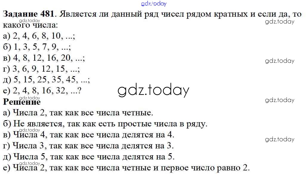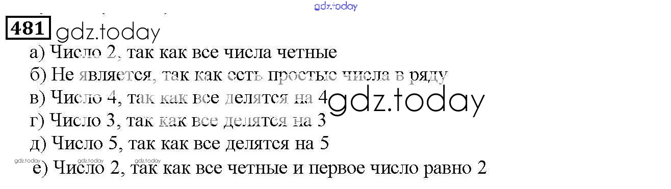 На страницах сайта gdz.today вы найдете учебный и вспомогательный материал, направленный на улучшения знаний школьной программы. ГДЗ - онлайн мир знаний 6.3. Свойства делимости Решение к главе 6. Делимость чисел 481 Учебнику по Математике для 5 класса Дорофеев, Шарыгин Просвещение 2015