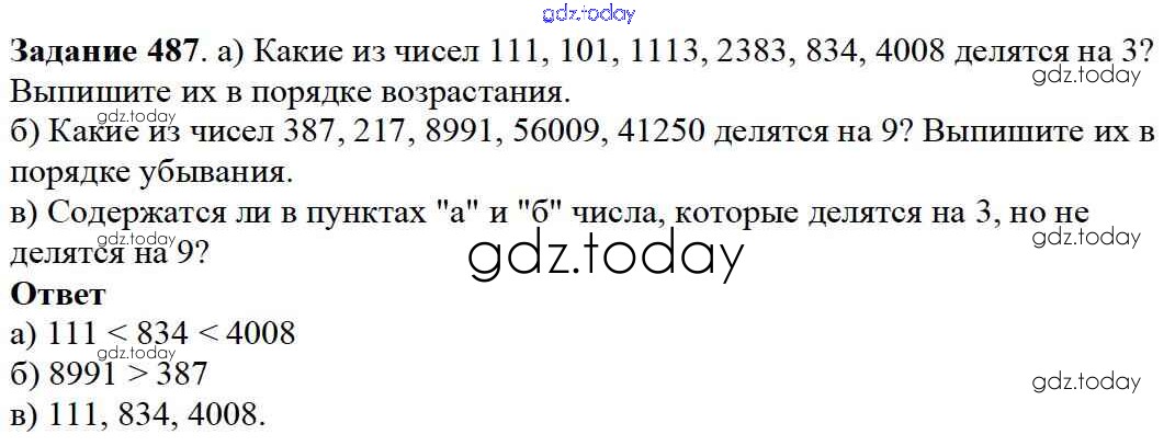 На страницах сайта gdz.today вы найдете учебный и вспомогательный материал, направленный на улучшения знаний школьной программы. ГДЗ - онлайн мир знаний 6.4. Признаки делимости Решение к главе 6. Делимость чисел 487 Учебнику по Математике для 5 класса Дорофеев, Шарыгин Просвещение 2015