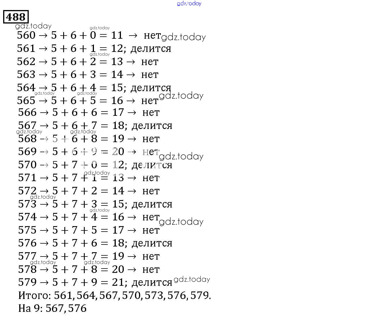 На страницах сайта gdz.today вы найдете учебный и вспомогательный материал, направленный на улучшения знаний школьной программы. ГДЗ - онлайн мир знаний 6.4. Признаки делимости Решение к главе 6. Делимость чисел 488 Учебнику по Математике для 5 класса Дорофеев, Шарыгин Просвещение 2015