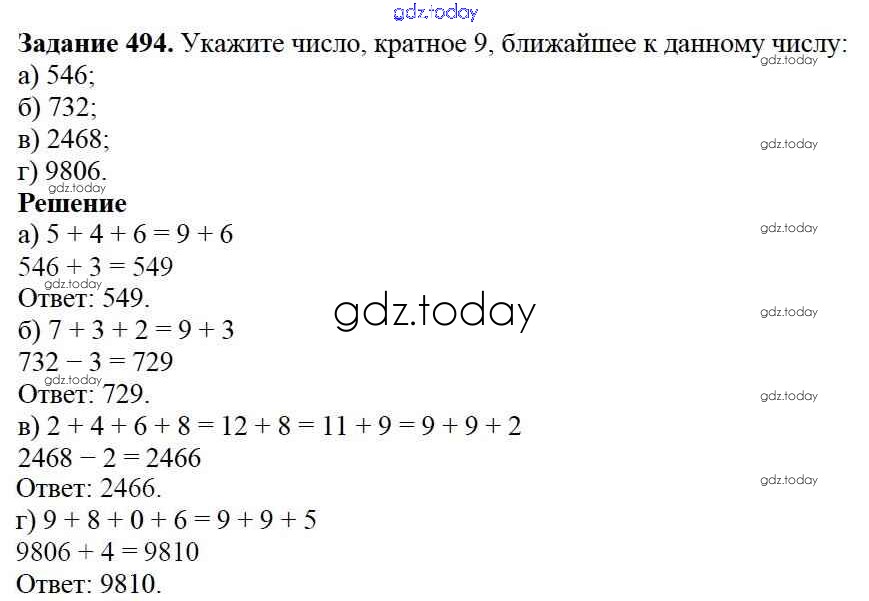 На страницах сайта gdz.today вы найдете учебный и вспомогательный материал, направленный на улучшения знаний школьной программы. ГДЗ - онлайн мир знаний 6.4. Признаки делимости Решение к главе 6. Делимость чисел 494 Учебнику по Математике для 5 класса Дорофеев, Шарыгин Просвещение 2015
