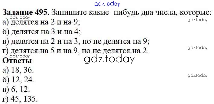 На страницах сайта gdz.today вы найдете учебный и вспомогательный материал, направленный на улучшения знаний школьной программы. ГДЗ - онлайн мир знаний 6.4. Признаки делимости Решение к главе 6. Делимость чисел 495 Учебнику по Математике для 5 класса Дорофеев, Шарыгин Просвещение 2015
