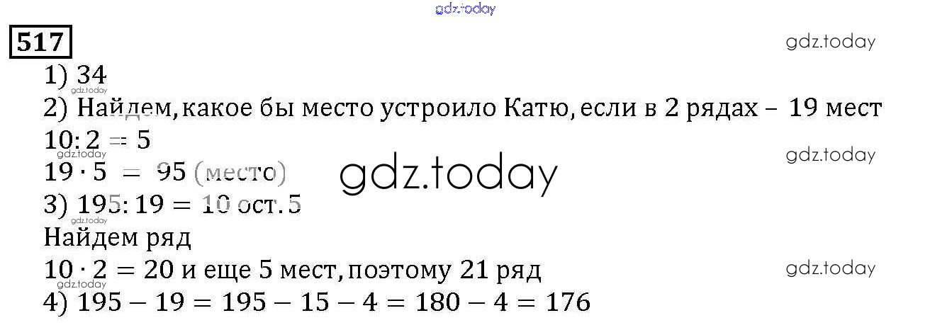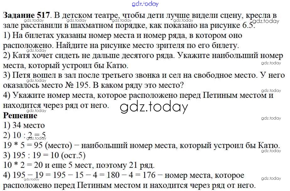 На страницах сайта gdz.today вы найдете учебный и вспомогательный материал, направленный на улучшения знаний школьной программы. ГДЗ - онлайн мир знаний 6.5. Деление с остатком Решение к главе 6. Делимость чисел 517 Учебнику по Математике для 5 класса Дорофеев, Шарыгин Просвещение 2015