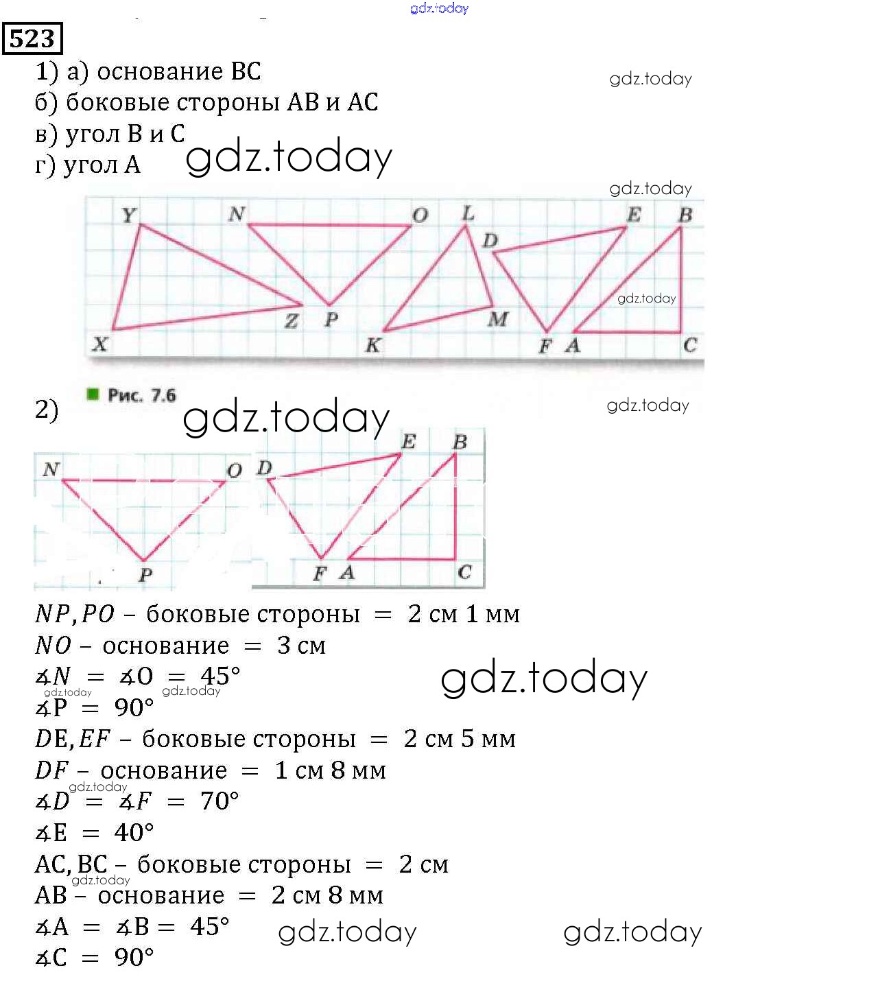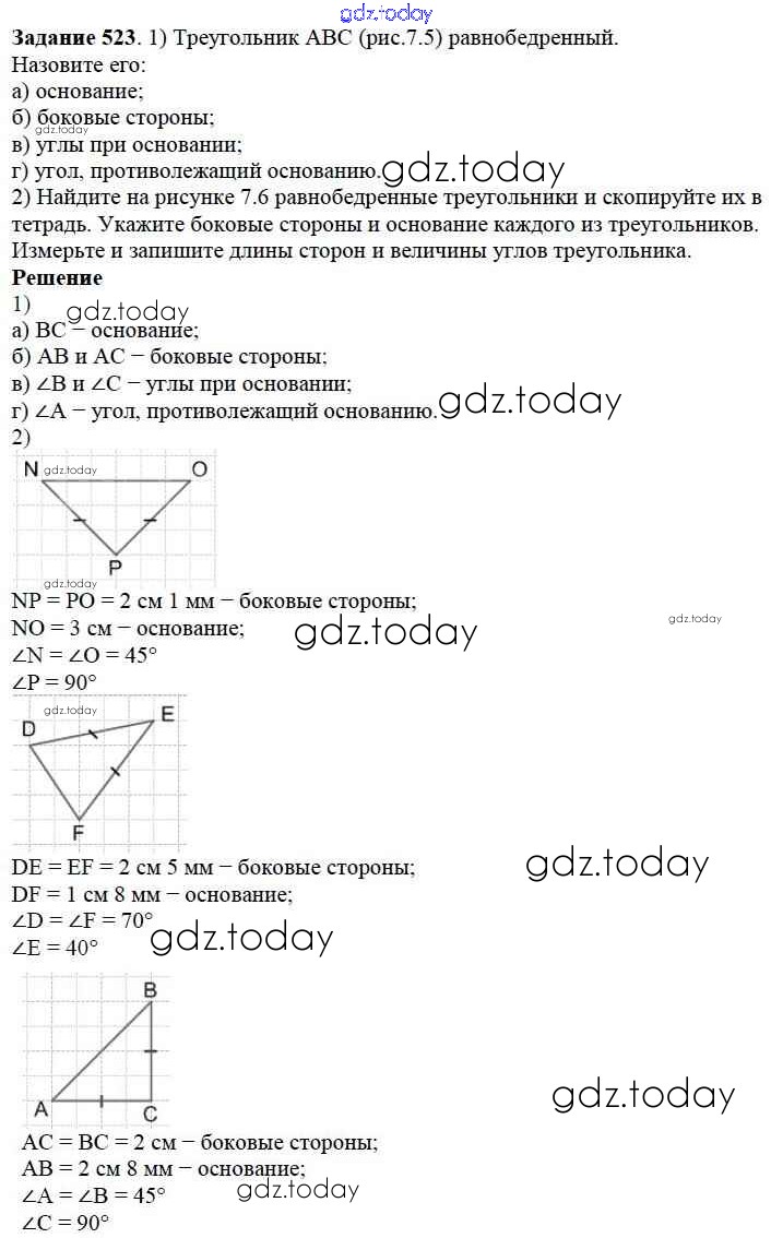 На страницах сайта gdz.today вы найдете учебный и вспомогательный материал, направленный на улучшения знаний школьной программы. ГДЗ - онлайн мир знаний 7.1. Треугольники и их виды Глава 7. Треугольники и четырехугольники 523 Учебнику по Математике для 5 класса Дорофеев, Шарыгин Просвещение 2015
