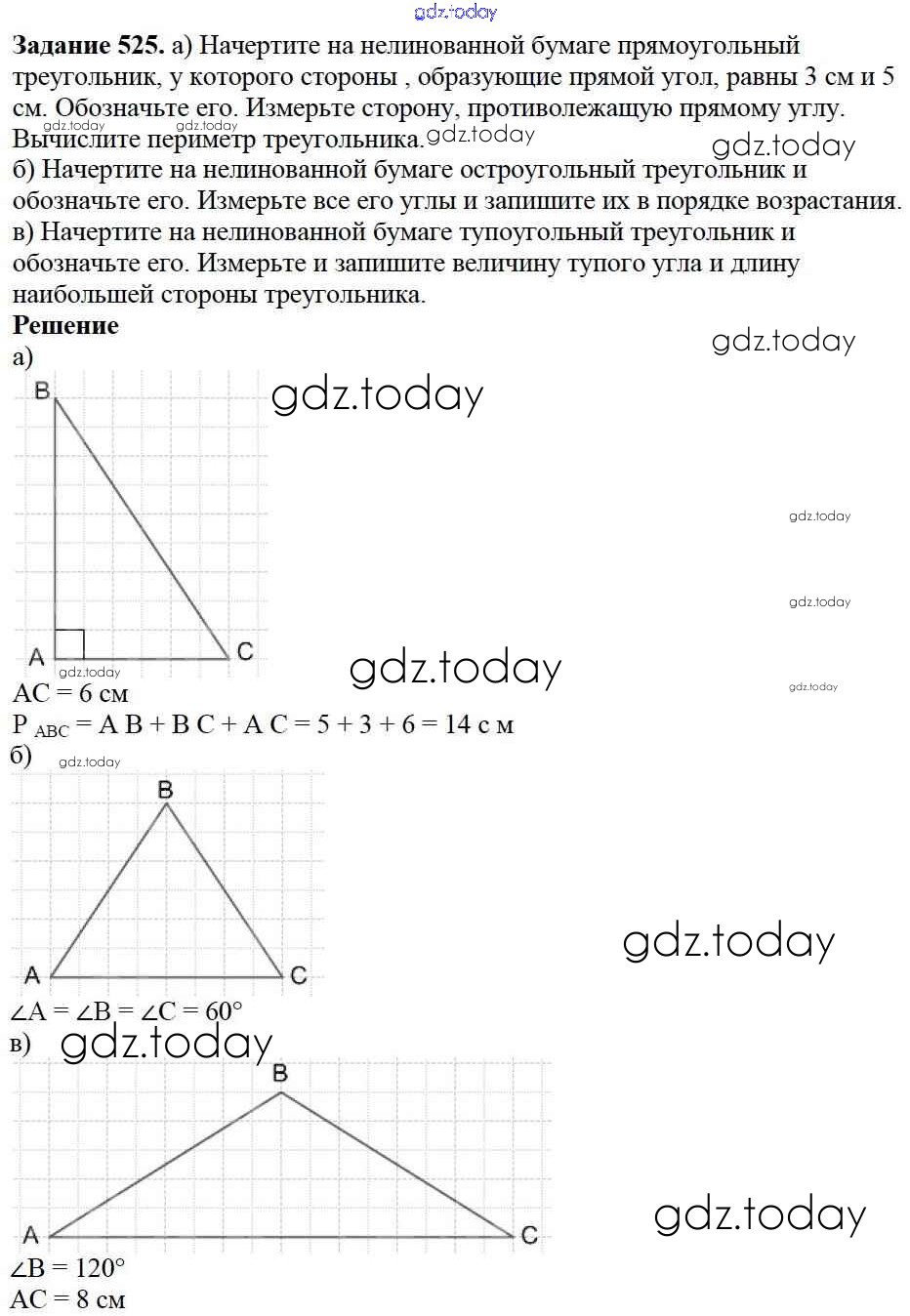 На страницах сайта gdz.today вы найдете учебный и вспомогательный материал, направленный на улучшения знаний школьной программы. ГДЗ - онлайн мир знаний 7.1. Треугольники и их виды Глава 7. Треугольники и четырехугольники 525 Учебнику по Математике для 5 класса Дорофеев, Шарыгин Просвещение 2015