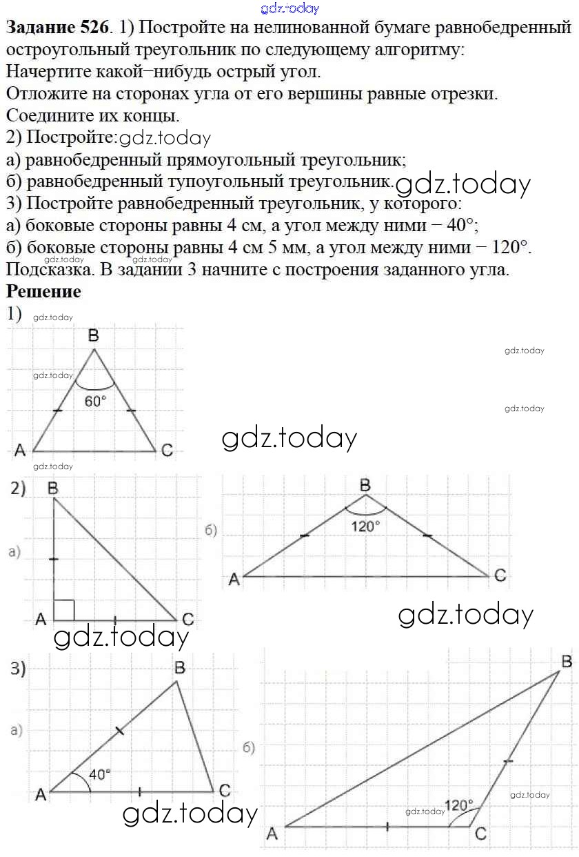 На страницах сайта gdz.today вы найдете учебный и вспомогательный материал, направленный на улучшения знаний школьной программы. ГДЗ - онлайн мир знаний 7.1. Треугольники и их виды Глава 7. Треугольники и четырехугольники 526 Учебнику по Математике для 5 класса Дорофеев, Шарыгин Просвещение 2015