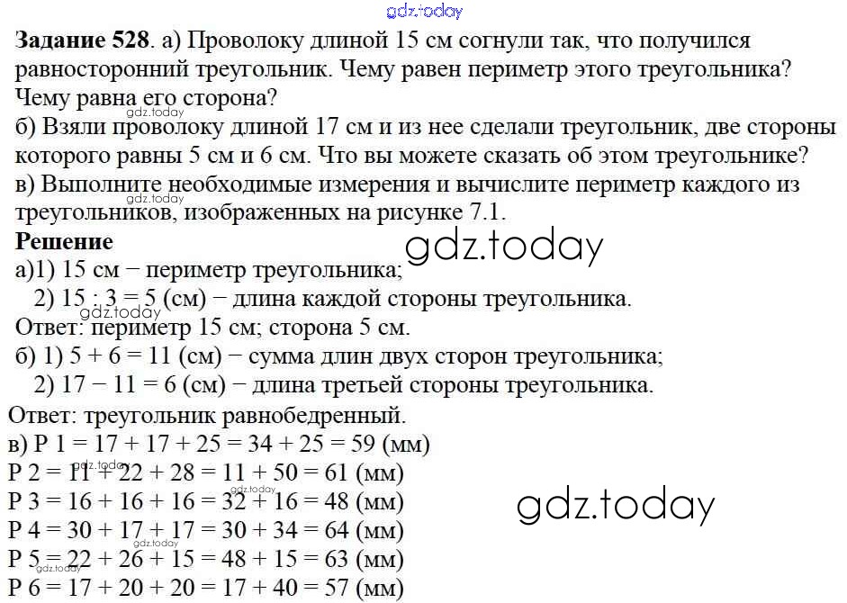 На страницах сайта gdz.today вы найдете учебный и вспомогательный материал, направленный на улучшения знаний школьной программы. ГДЗ - онлайн мир знаний 7.1. Треугольники и их виды Глава 7. Треугольники и четырехугольники 528 Учебнику по Математике для 5 класса Дорофеев, Шарыгин Просвещение 2015