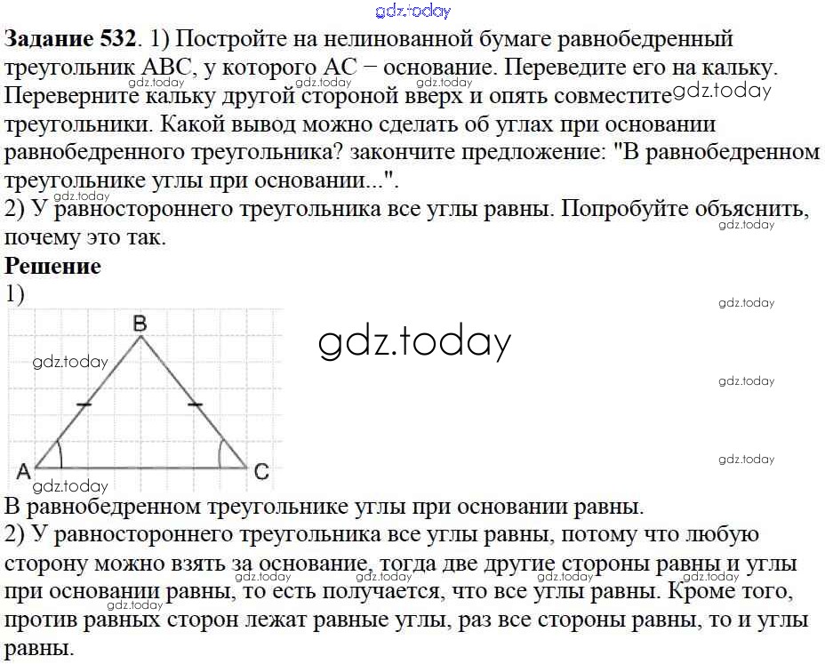 На страницах сайта gdz.today вы найдете учебный и вспомогательный материал, направленный на улучшения знаний школьной программы. ГДЗ - онлайн мир знаний 7.1. Треугольники и их виды Глава 7. Треугольники и четырехугольники 532 Учебнику по Математике для 5 класса Дорофеев, Шарыгин Просвещение 2015