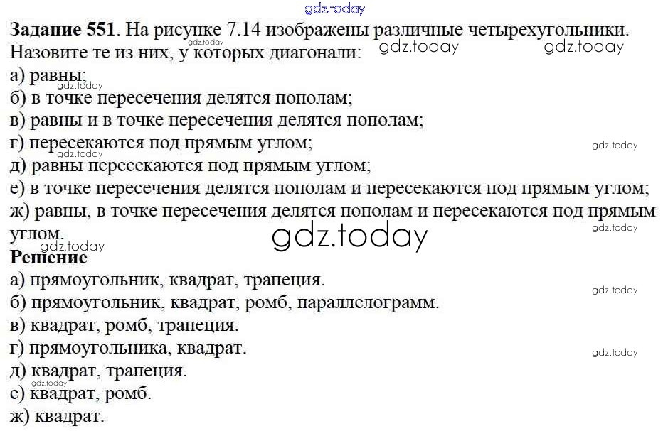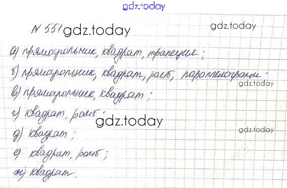 На страницах сайта gdz.today вы найдете учебный и вспомогательный материал, направленный на улучшения знаний школьной программы. ГДЗ - онлайн мир знаний 7.2. Прямоугольники Глава 7. Треугольники и четырехугольники 551 Учебнику по Математике для 5 класса Дорофеев, Шарыгин Просвещение 2015