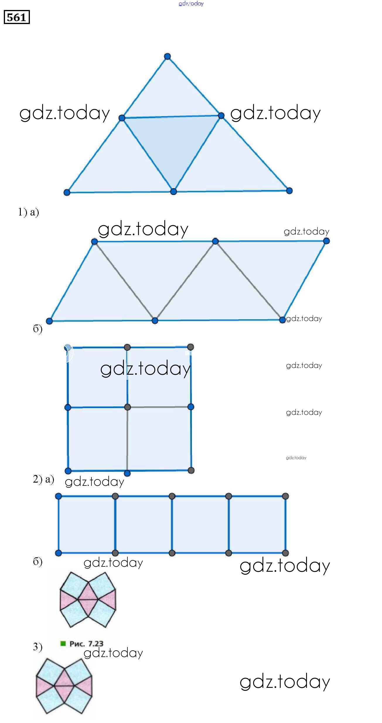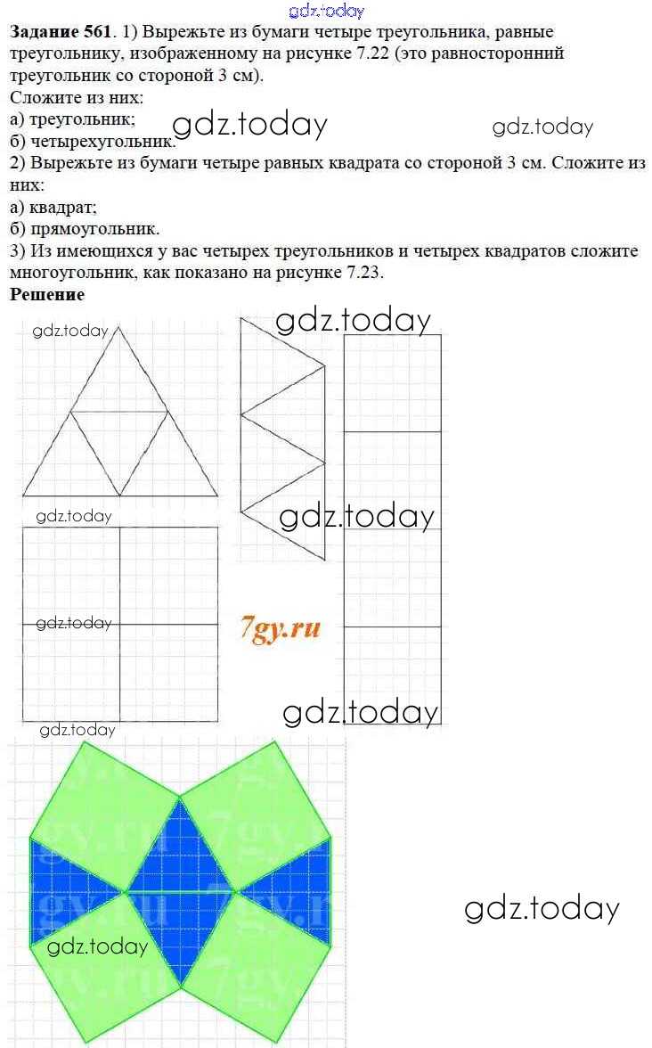 На страницах сайта gdz.today вы найдете учебный и вспомогательный материал, направленный на улучшения знаний школьной программы. ГДЗ - онлайн мир знаний 7.3. Равенство фигур Глава 7. Треугольники и четырехугольники 561 Учебнику по Математике для 5 класса Дорофеев, Шарыгин Просвещение 2015