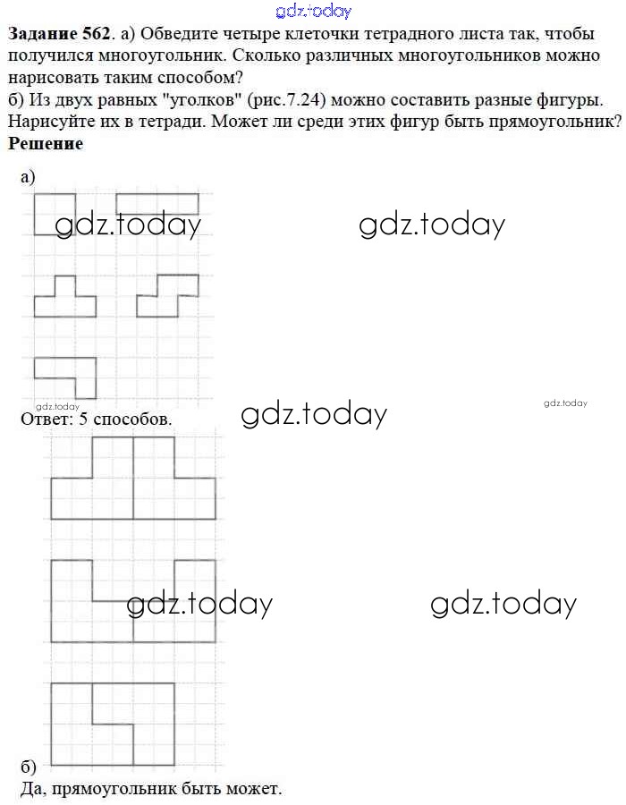 Ответы к 7.3. Равенство фигур Глава 7. Треугольники и четырехугольники 562 Учебнику по Математике для 5 класса Дорофеев, Шарыгин Просвещение 2015