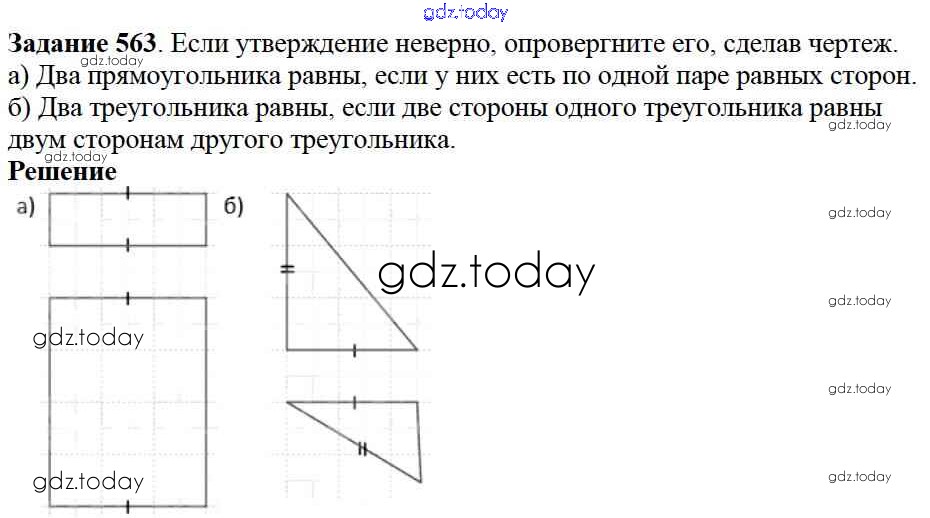 На страницах сайта gdz.today вы найдете учебный и вспомогательный материал, направленный на улучшения знаний школьной программы. ГДЗ - онлайн мир знаний 7.3. Равенство фигур Глава 7. Треугольники и четырехугольники 563 Учебнику по Математике для 5 класса Дорофеев, Шарыгин Просвещение 2015