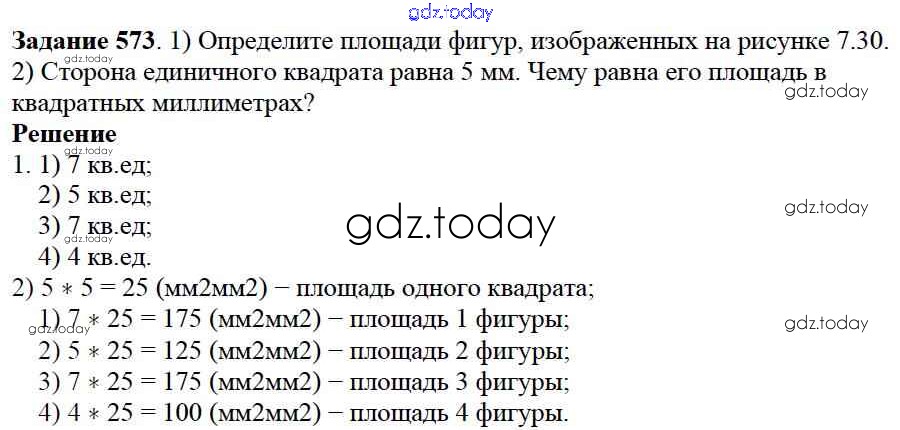 На страницах сайта gdz.today вы найдете учебный и вспомогательный материал, направленный на улучшения знаний школьной программы. ГДЗ - онлайн мир знаний 7.4. Площадь прямоугольника Глава 7. Треугольники и четырехугольники 573 Учебнику по Математике для 5 класса Дорофеев, Шарыгин Просвещение 2015