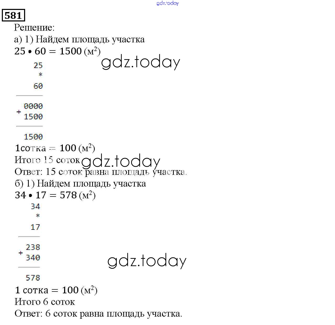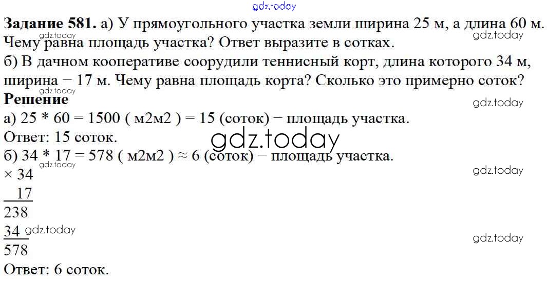 Ответы к 7.4. Площадь прямоугольника Глава 7. Треугольники и четырехугольники 581 Учебнику по Математике для 5 класса Дорофеев, Шарыгин Просвещение 2015