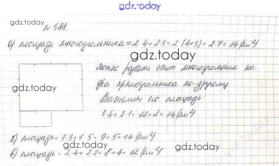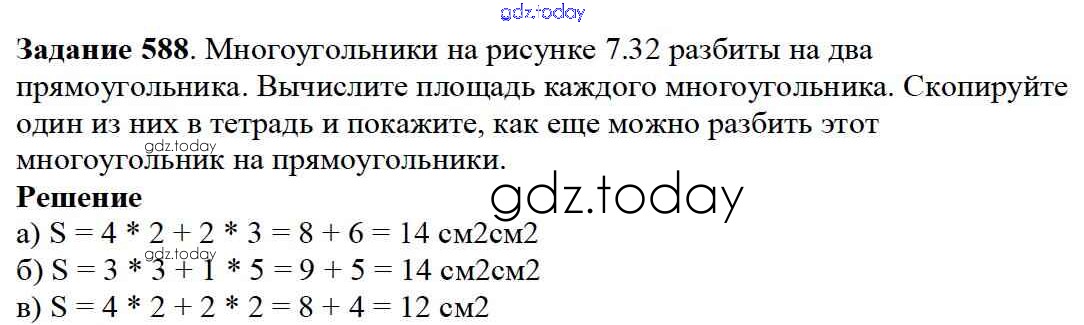 На страницах сайта gdz.today вы найдете учебный и вспомогательный материал, направленный на улучшения знаний школьной программы. ГДЗ - онлайн мир знаний 7.4. Площадь прямоугольника Глава 7. Треугольники и четырехугольники 588 Учебнику по Математике для 5 класса Дорофеев, Шарыгин Просвещение 2015