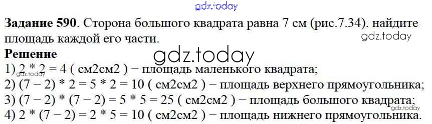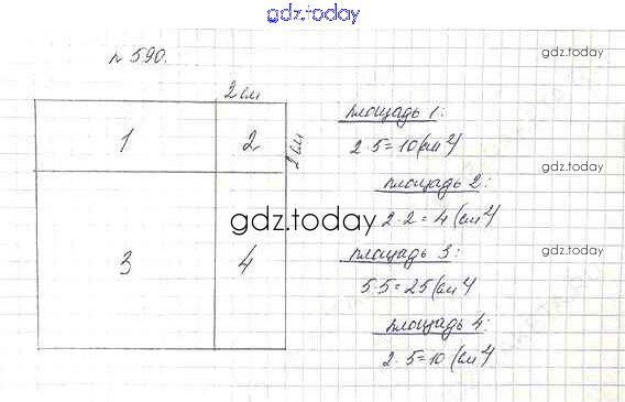 На страницах сайта gdz.today вы найдете учебный и вспомогательный материал, направленный на улучшения знаний школьной программы. ГДЗ - онлайн мир знаний 7.4. Площадь прямоугольника Глава 7. Треугольники и четырехугольники 590 Учебнику по Математике для 5 класса Дорофеев, Шарыгин Просвещение 2015