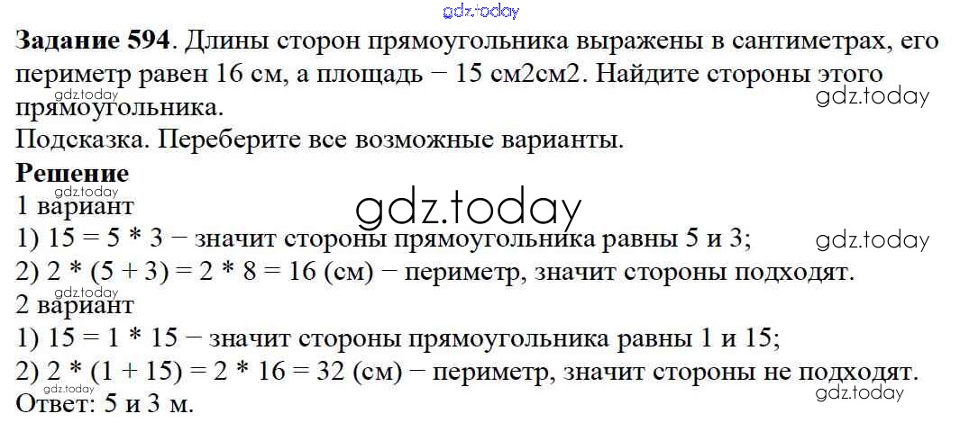 На страницах сайта gdz.today вы найдете учебный и вспомогательный материал, направленный на улучшения знаний школьной программы. ГДЗ - онлайн мир знаний 7.4. Площадь прямоугольника Глава 7. Треугольники и четырехугольники 594 Учебнику по Математике для 5 класса Дорофеев, Шарыгин Просвещение 2015