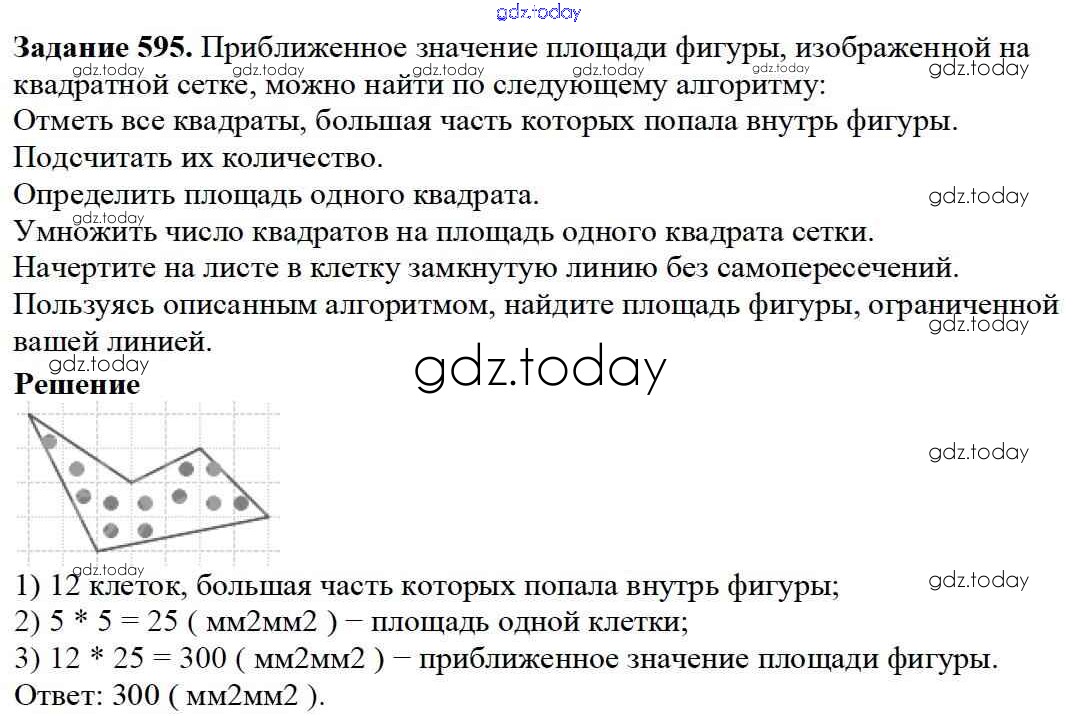 На страницах сайта gdz.today вы найдете учебный и вспомогательный материал, направленный на улучшения знаний школьной программы. ГДЗ - онлайн мир знаний 7.4. Площадь прямоугольника Глава 7. Треугольники и четырехугольники 595 Учебнику по Математике для 5 класса Дорофеев, Шарыгин Просвещение 2015
