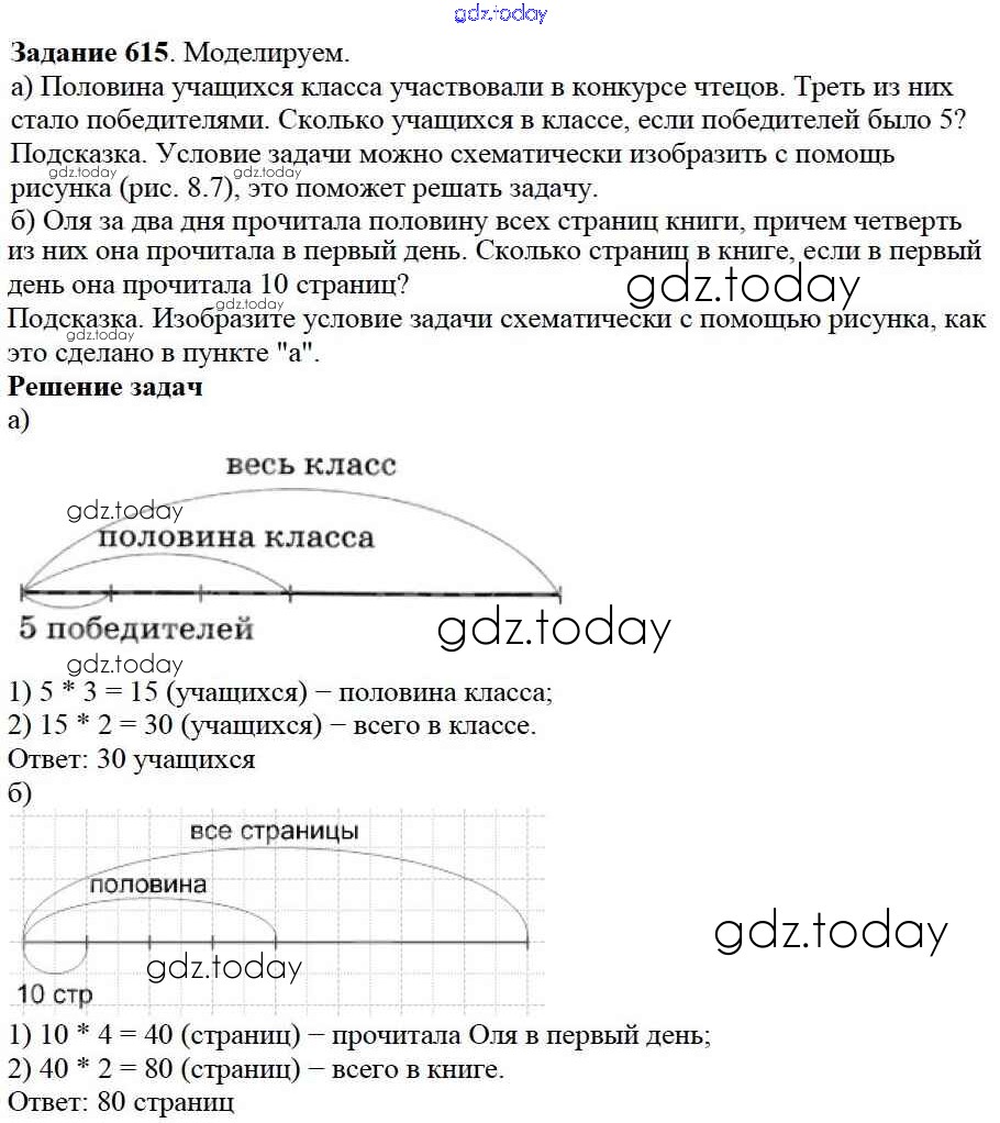 На страницах сайта gdz.today вы найдете учебный и вспомогательный материал, направленный на улучшения знаний школьной программы. ГДЗ - онлайн мир знаний 8.1. Доли Глава 8. Дроби 615 Учебнику по Математике для 5 класса Дорофеев, Шарыгин Просвещение 2015