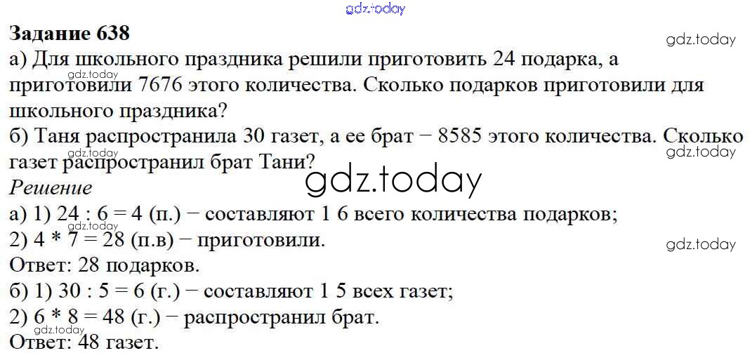 На страницах сайта gdz.today вы найдете учебный и вспомогательный материал, направленный на улучшения знаний школьной программы. ГДЗ - онлайн мир знаний 8.2. Что такое дробь Глава 8. Дроби 638 Учебнику по Математике для 5 класса Дорофеев, Шарыгин Просвещение 2015