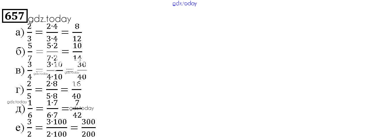 На страницах сайта gdz.today вы найдете учебный и вспомогательный материал, направленный на улучшения знаний школьной программы. ГДЗ - онлайн мир знаний 8.3. Основное свойство дроби Глава 8. Дроби 657 Учебнику по Математике для 5 класса Дорофеев, Шарыгин Просвещение 2015