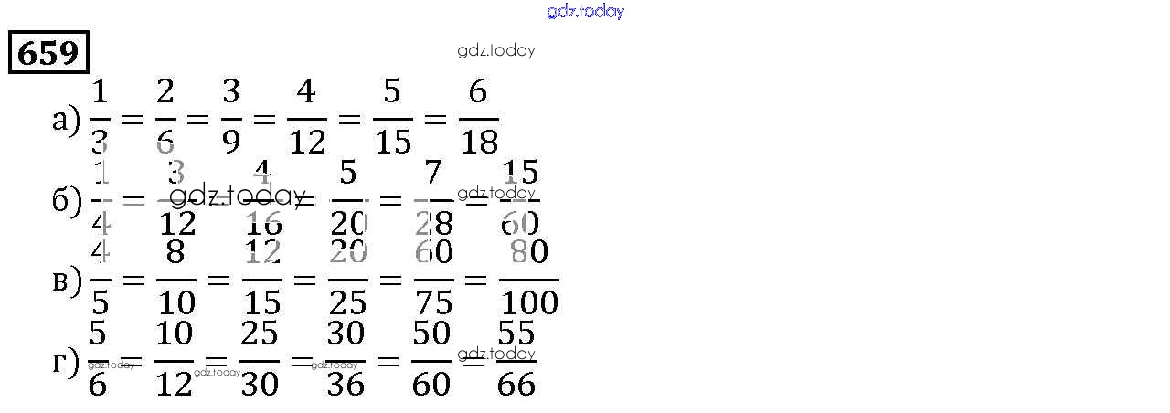 На страницах сайта gdz.today вы найдете учебный и вспомогательный материал, направленный на улучшения знаний школьной программы. ГДЗ - онлайн мир знаний 8.3. Основное свойство дроби Глава 8. Дроби 659 Учебнику по Математике для 5 класса Дорофеев, Шарыгин Просвещение 2015