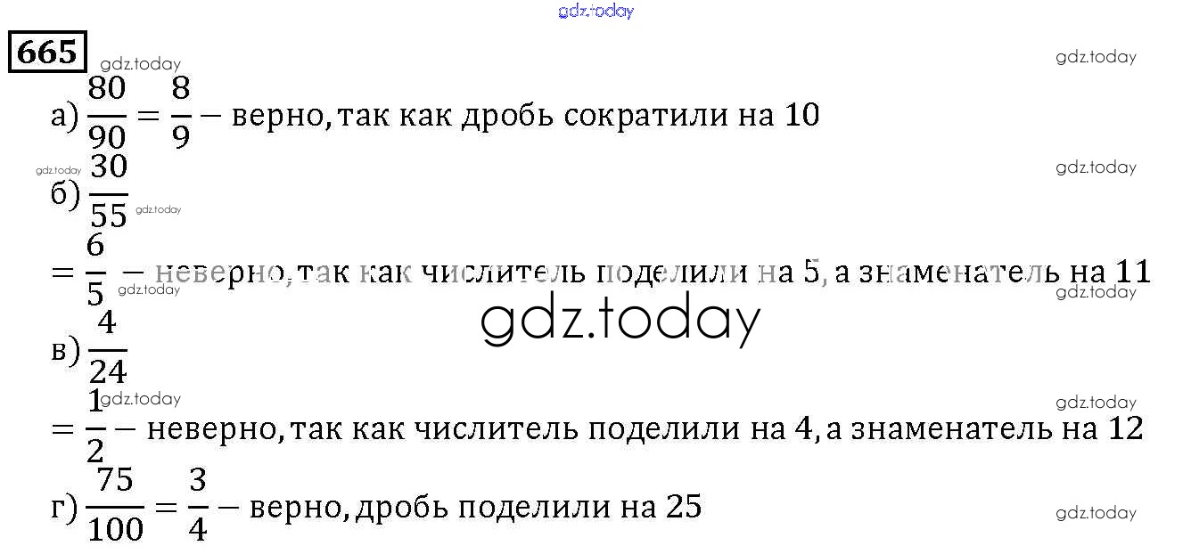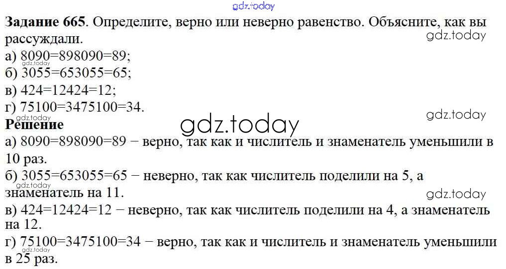 На страницах сайта gdz.today вы найдете учебный и вспомогательный материал, направленный на улучшения знаний школьной программы. ГДЗ - онлайн мир знаний 8.3. Основное свойство дроби Глава 8. Дроби 665 Учебнику по Математике для 5 класса Дорофеев, Шарыгин Просвещение 2015