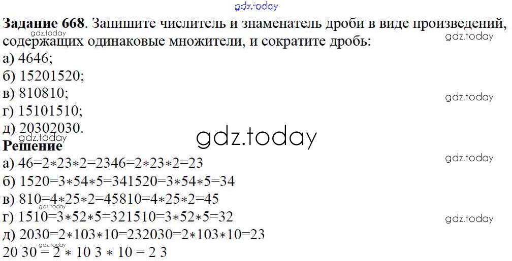 На страницах сайта gdz.today вы найдете учебный и вспомогательный материал, направленный на улучшения знаний школьной программы. ГДЗ - онлайн мир знаний 8.3. Основное свойство дроби Глава 8. Дроби 668 Учебнику по Математике для 5 класса Дорофеев, Шарыгин Просвещение 2015