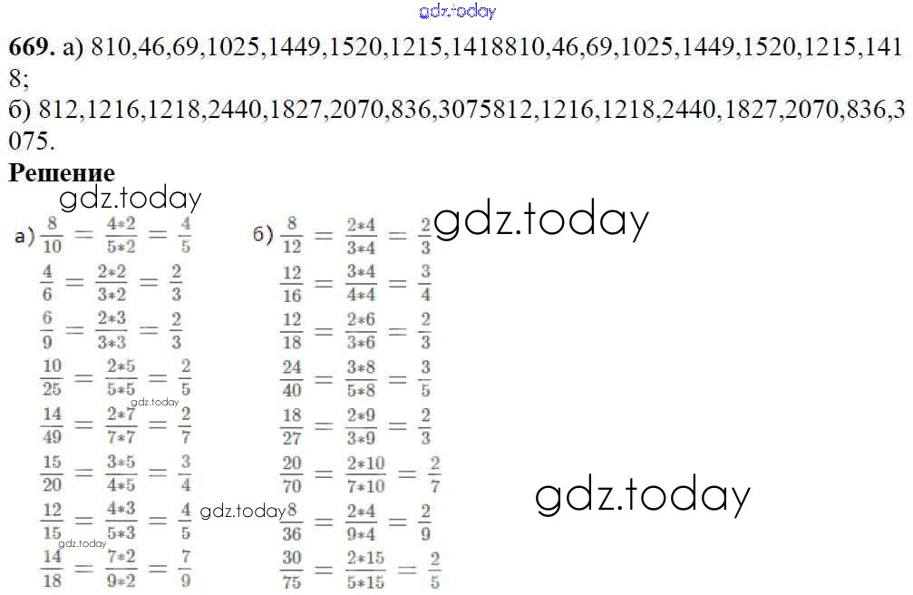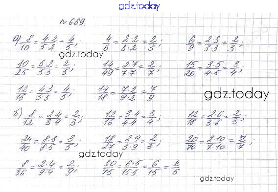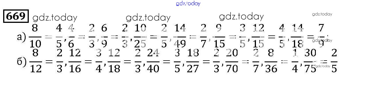 На страницах сайта gdz.today вы найдете учебный и вспомогательный материал, направленный на улучшения знаний школьной программы. ГДЗ - онлайн мир знаний 8.3. Основное свойство дроби Глава 8. Дроби 669 Учебнику по Математике для 5 класса Дорофеев, Шарыгин Просвещение 2015