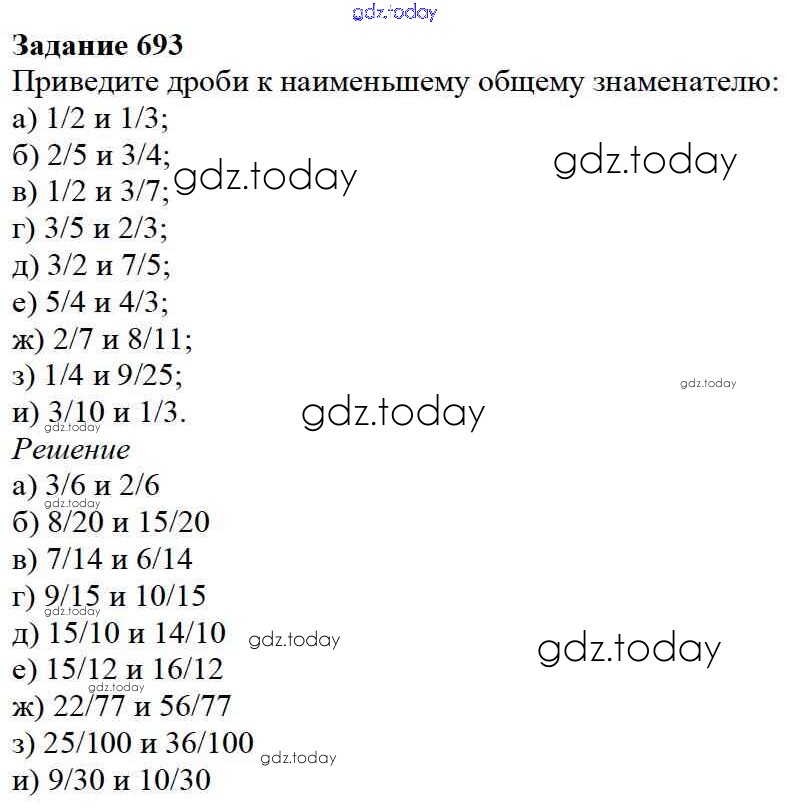 На страницах сайта gdz.today вы найдете учебный и вспомогательный материал, направленный на улучшения знаний школьной программы. ГДЗ - онлайн мир знаний 8.4. Приведение дробей к общему знаменателю Глава 8. Дроби 693 Учебнику по Математике для 5 класса Дорофеев, Шарыгин Просвещение 2015